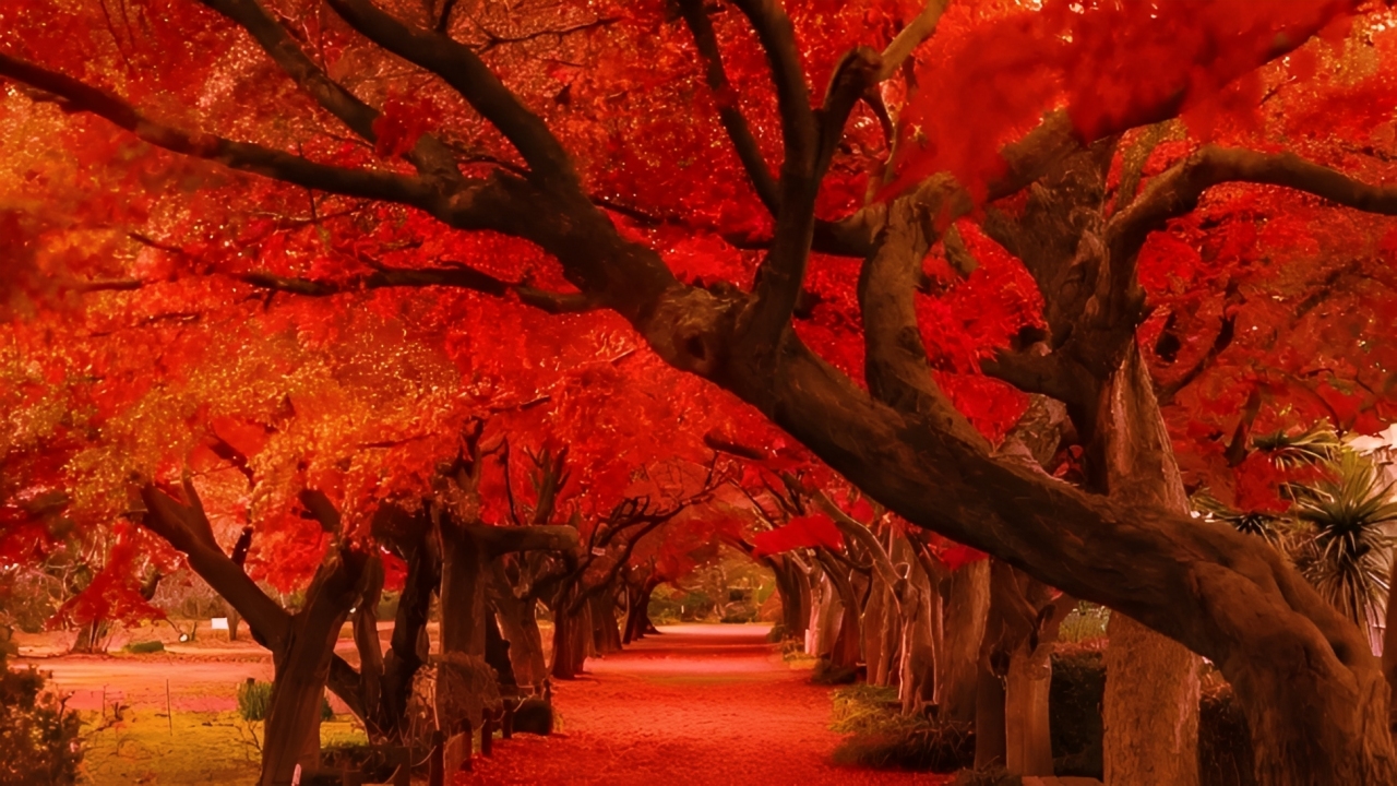 Toàn bộ cung đường vào lúc này chuyển sang sắc đỏ, cam, vàng rực rỡ. Đặc biệt tại Kyoto khi cảnh vật trở nên lung linh hơn bao giờ hết với những khu vườn lá phong đỏ thắm quanh các đền đài cũng như thời tiết mùa thu rất ủng hộ cho việc đi bộ tham quan. Bầu trời cũng trong xanh hơn giúp bạn dễ dàng ngắm toàn cảnh núi Phú Sĩ mà không bị mây mù che phủ.