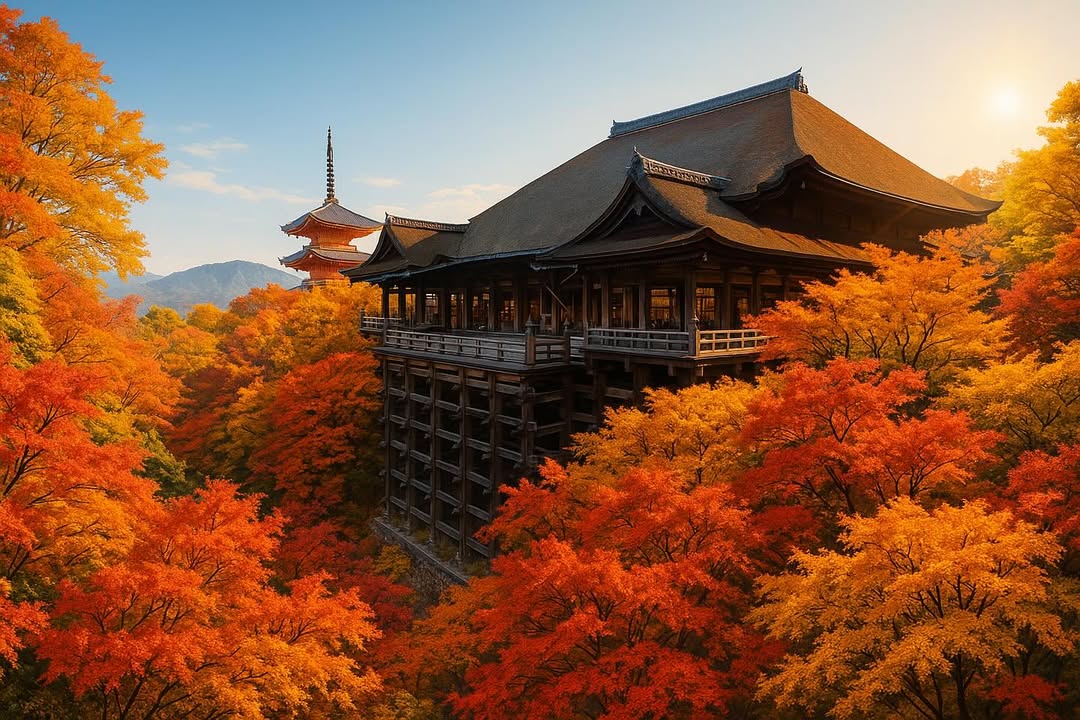 Chùa Thanh Thủy (Kiyomizu-dera): nổi tiếng với kiến trúc được xây dựng bên sườn đồi chênh vênh mà không sử dụng bất kì một chiếc đinh nào. Ngôi chùa làm nhiều du khách mê đắm với view từ ban công nhìn ra khu vườn 4 mùa tạo nên cảm giác thơ mộng khó tả.