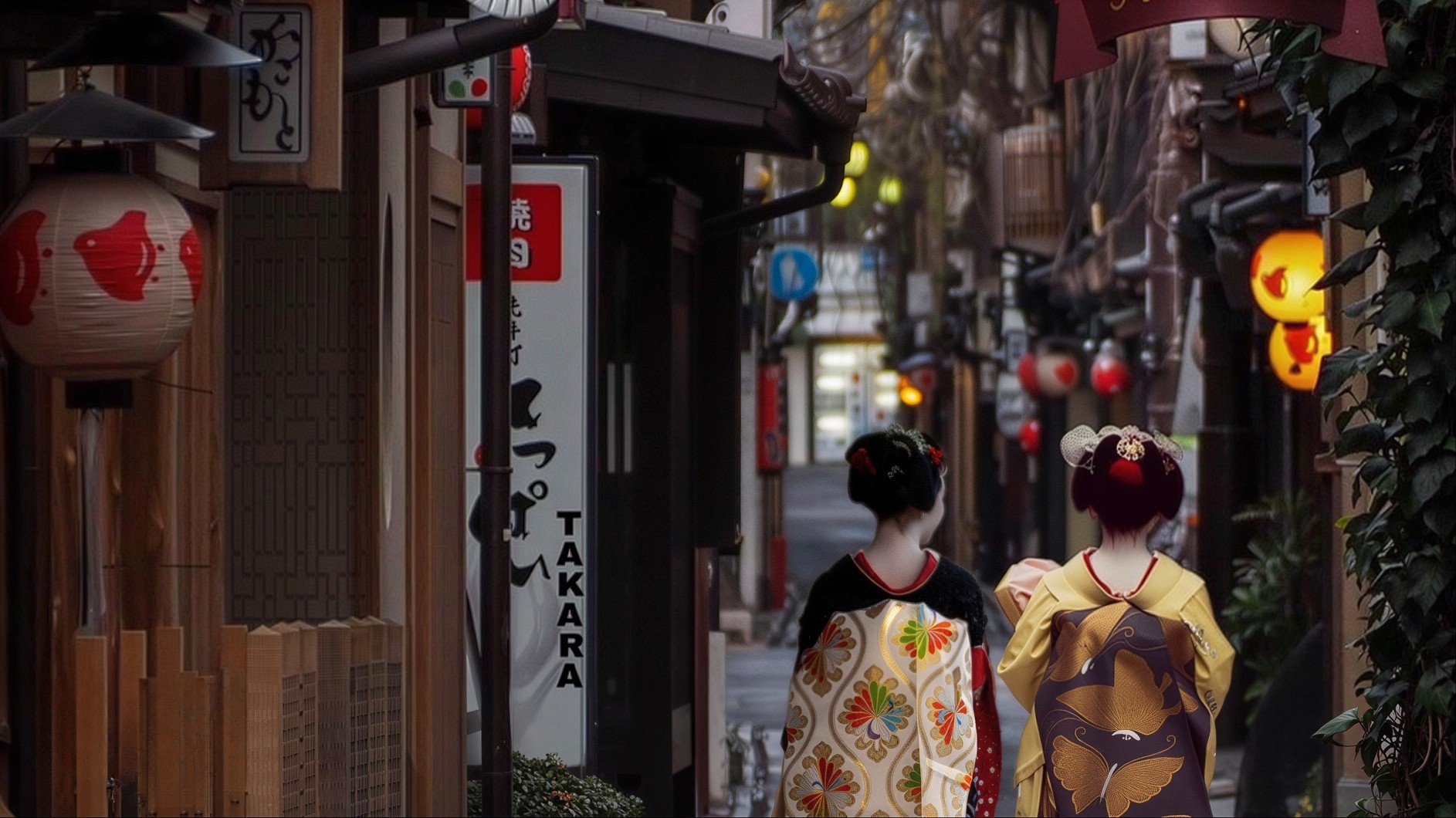 Phố Hanami-koji là con đường chính và đẹp nhất Gion tại đây. Nếu may mắn vào khoảng 17h00 - 18h00, bạn có thể bắt gặp các Geisha hoặc Maiko (Geisha tập sự) trong trang phục Kimono lộng lẫy đang di chuyển đến các buổi tiệc trà. Lưu ý là không nên chụp ảnh các Geisha tùy tiện khi không được cho phép.