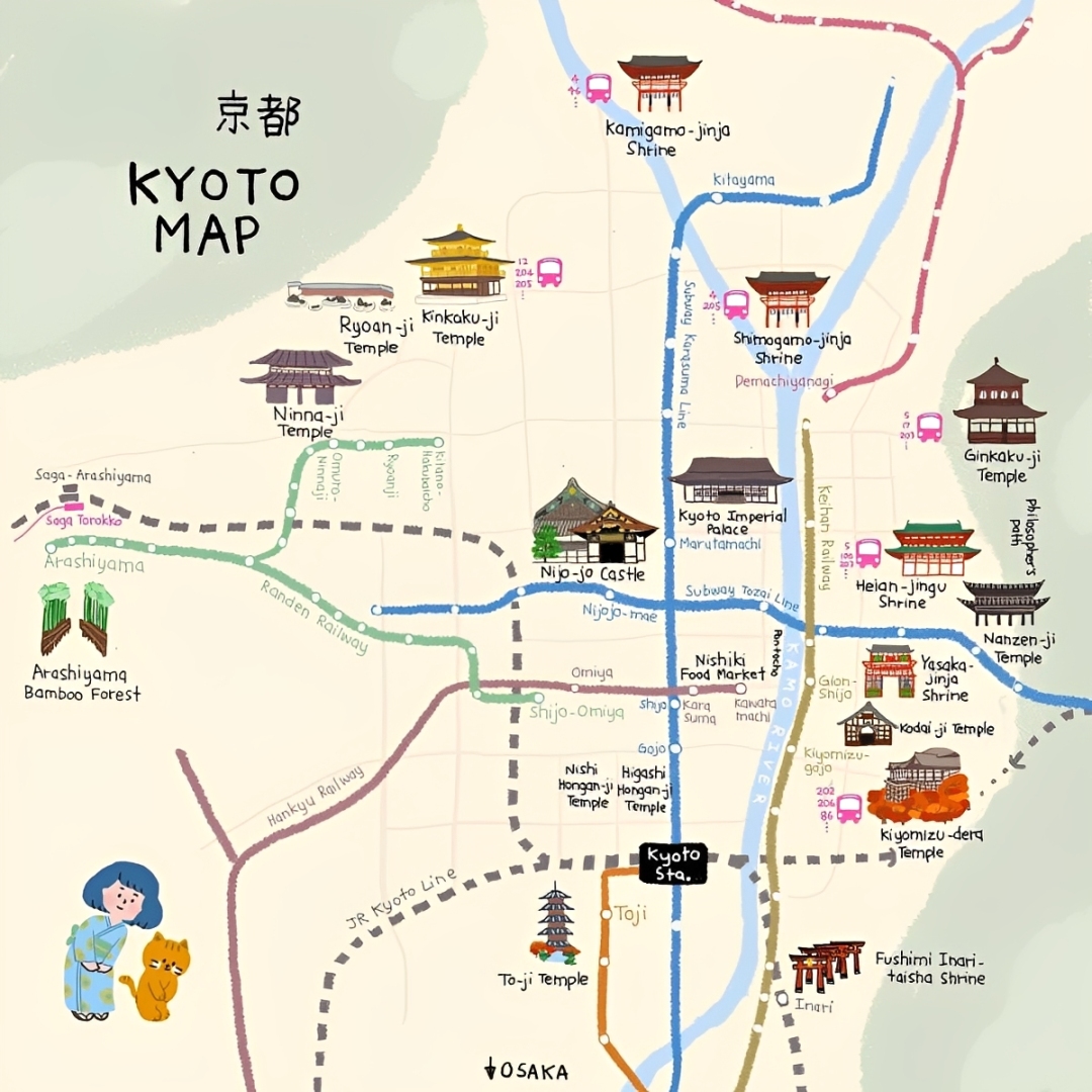 Bản đồ với các địa điểm du lịch tại Kyoto