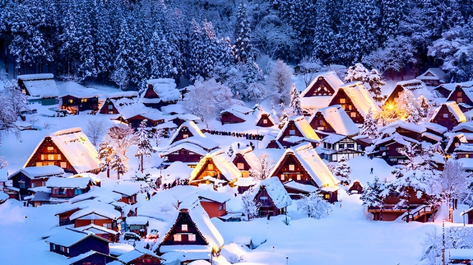 Được mệnh danh là “ngôi làng cổ tích tuyết trắng”, Shirakawa-go vào mùa đông với các mái nhà cổ phủ tuyết là một cảnh tượng tuyệt vời với bất cứ ai chiêm ngưỡng được vẻ đẹp này. Vào ban đêm, khi những ngôi nhà được thắp sáng bởi ánh đèn lung linh khiến ngôi làng trở nên huyền ảo hơn bao giờ hết.